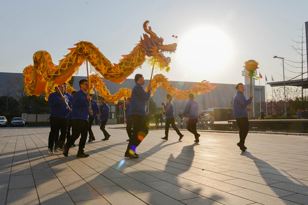 “舞龍迎開工”活動始于2013年,既應(yīng)歡騰喜慶情景,又合綠色環(huán)保理念。集團(tuán)各公司青年員工組成的舞龍隊,以飽滿的熱情和昂揚的斗志迎接全體員工重返工作崗位。伴著鑼聲,踩著鼓點,兩條巨龍在他們手中上下翻騰,時如蛟龍出海,時如雙龍駕云,將開工氛圍推向高潮。員工們步履輕快、迎著朝陽邁入廠區(qū),元氣滿滿地踏上牛年的新征程。