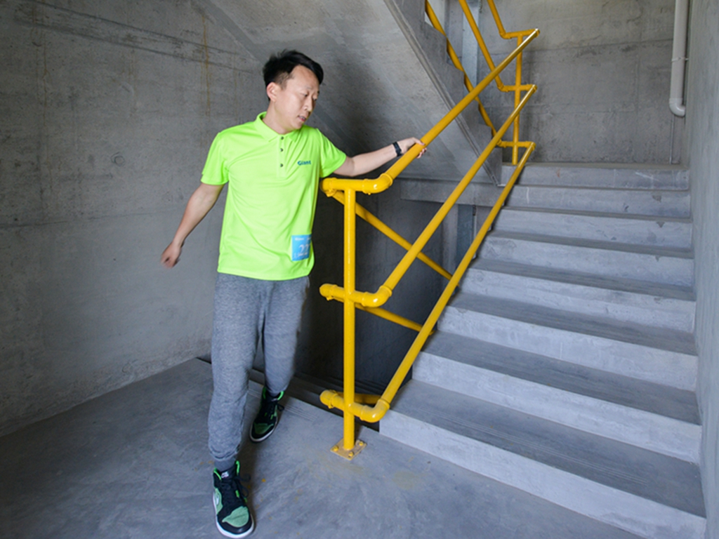 一聲令響,選手們分組出發(fā),向頂峰發(fā)起挑戰(zhàn),用奮進的腳步垂直穿越巨龍電梯試驗塔,競演一場階梯快速對決。攀登188米(相當于70層樓房)的垂直高度并不輕松,半程過后許多選手體力不支,需憑毅力,借助樓梯扶手繼續(xù)向上攀登,階梯上留下選手們的足跡,也灑下艱辛的汗水。